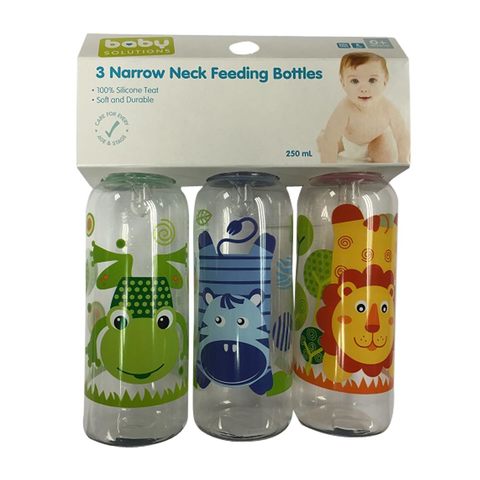 250ml Narrow Neck Feeding Bottles - Set of 3 quantity